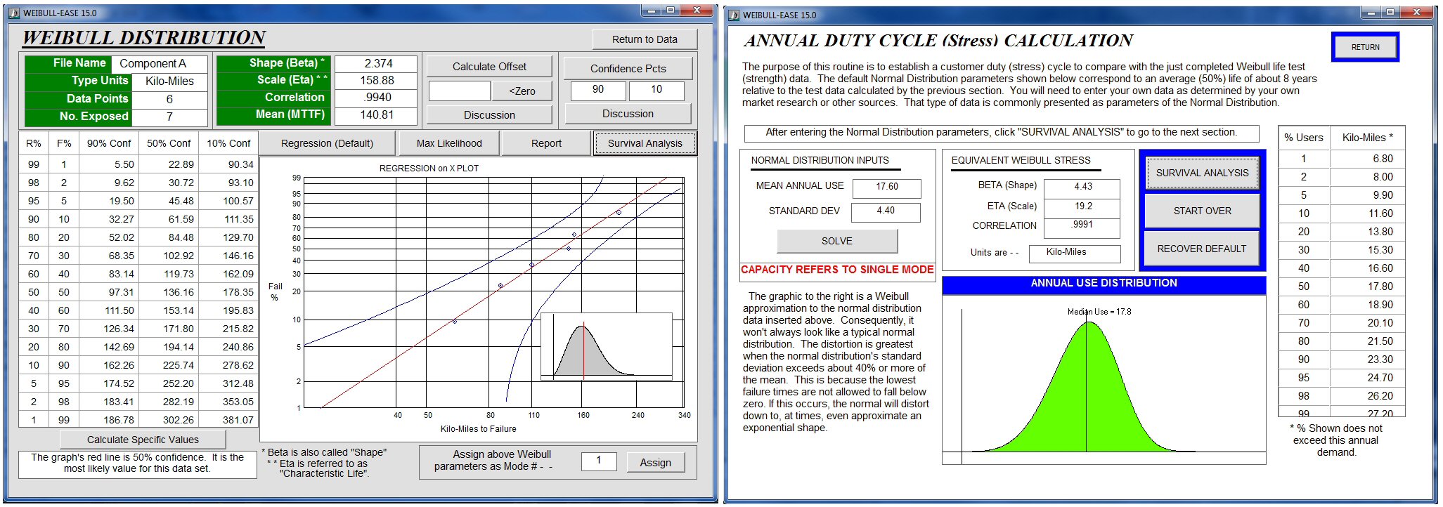 2.) Duty Cycle or Customer Demand Analysis This data is typically provided by market research groups. This routine is to convert this market research use data in the form of quartiles by annual use, or as a normal distribution with standard deviation, into a form that can be compared to the product's capability. Here again, the analyses are based upon the Weibull relationships.